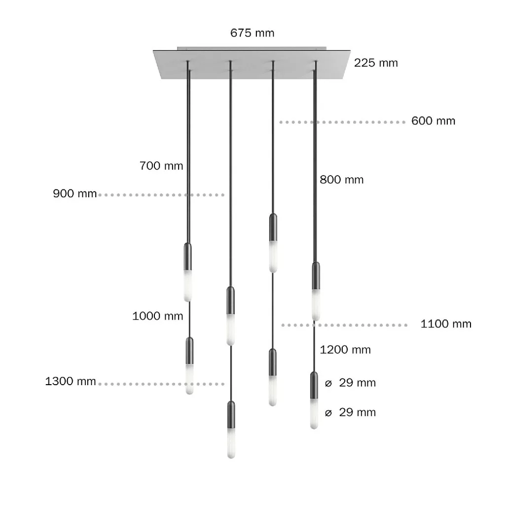 Az egyes függesztékek hossza: 130, 120, 110, 100, 90, 80, 70, 60 cm