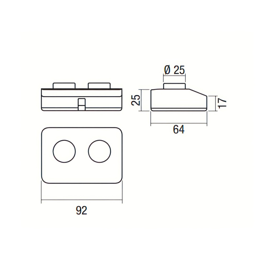 H: 92 mm, M: 64 mm, V: 15 mm