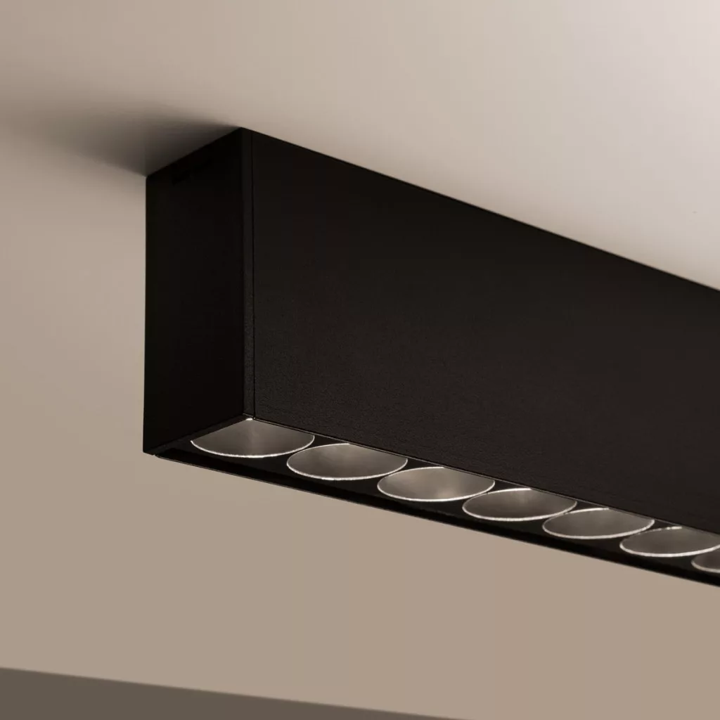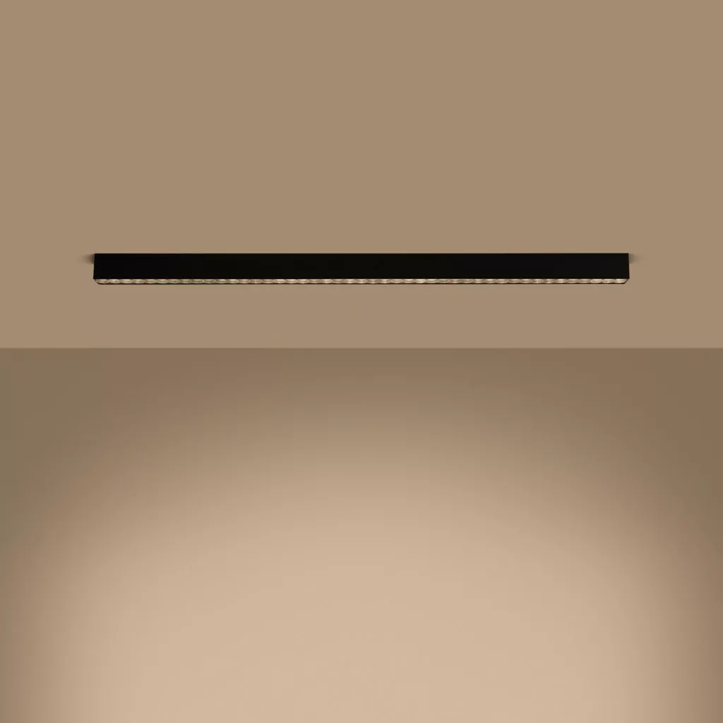 A A SOREN lámpa sötét fényrendszerrel van felszerelve, amely kiváló minőségű világítást garantál. A lámpatestbe süllyesztett fényforrás korlátozza az oldalsó fénykibocsátást, csökkentve a tükröződést az olyan felületekről, mint a bútorok, tükörfelületek vagy számítógép-monitorok. Ennek köszönhetően a fénykibocsátás nem okoz káprázást vagy túlzott fényerőt, ami egyenletes fényerőt, jobb közérzetet és magas komfortérzetet biztosít a szobákban.