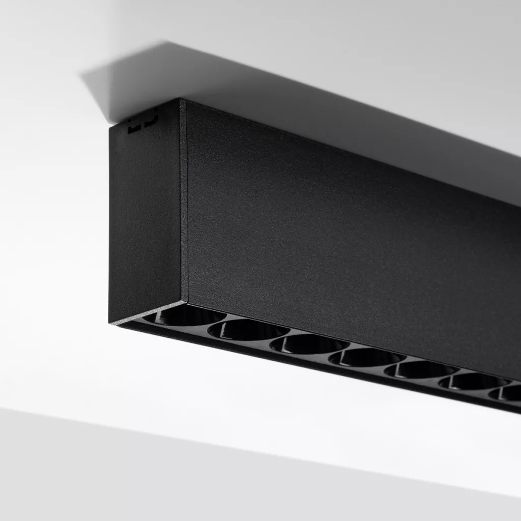 A SOREN lámpa kiváló minőségű alumíniumból készült, amely biztosítja annak tartósságát és könnyedségét. Univerzális fekete színe tökéletesen illeszkedik a belső terek különféle színsémáihoz, modern jelleget kölcsönözve azoknak.