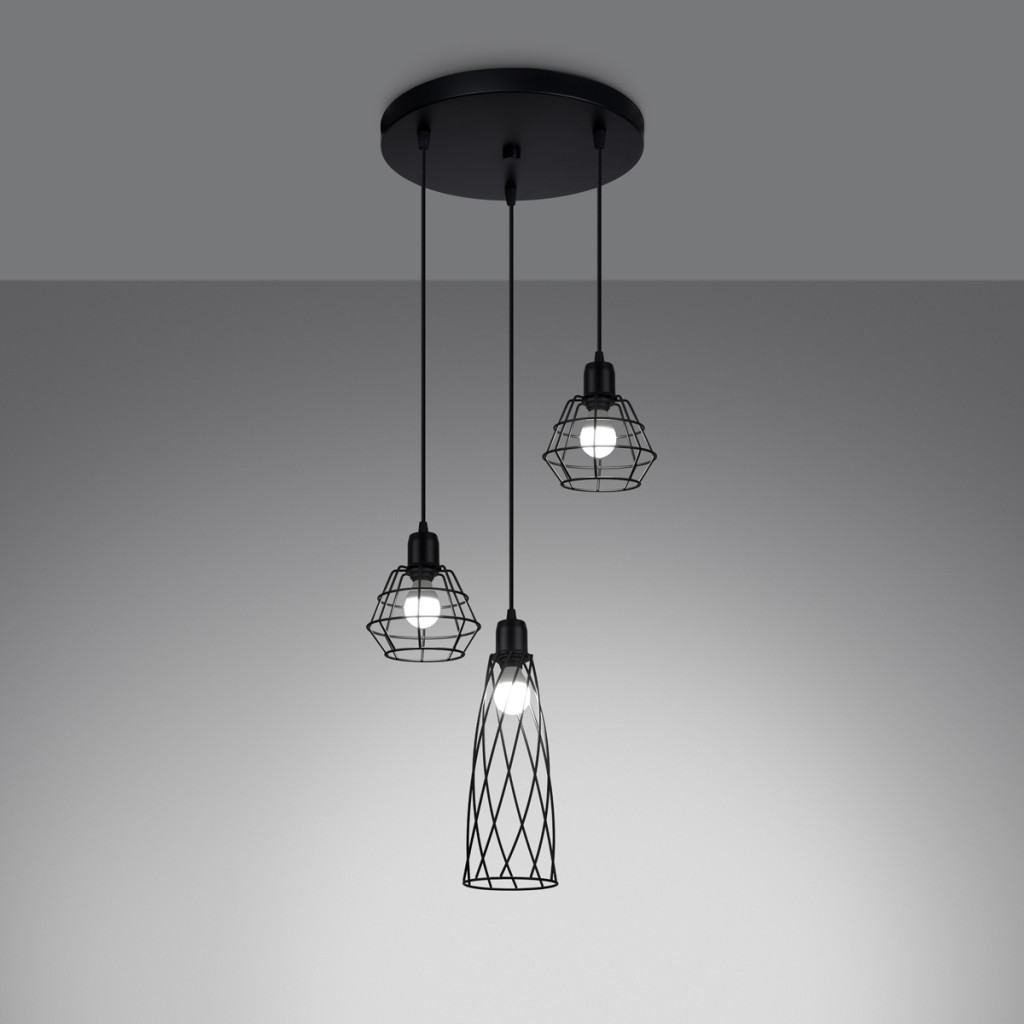 Sollux design lámpa SUBA 3P függőlámpa fekete SL.1166 IP20 mag 120cm