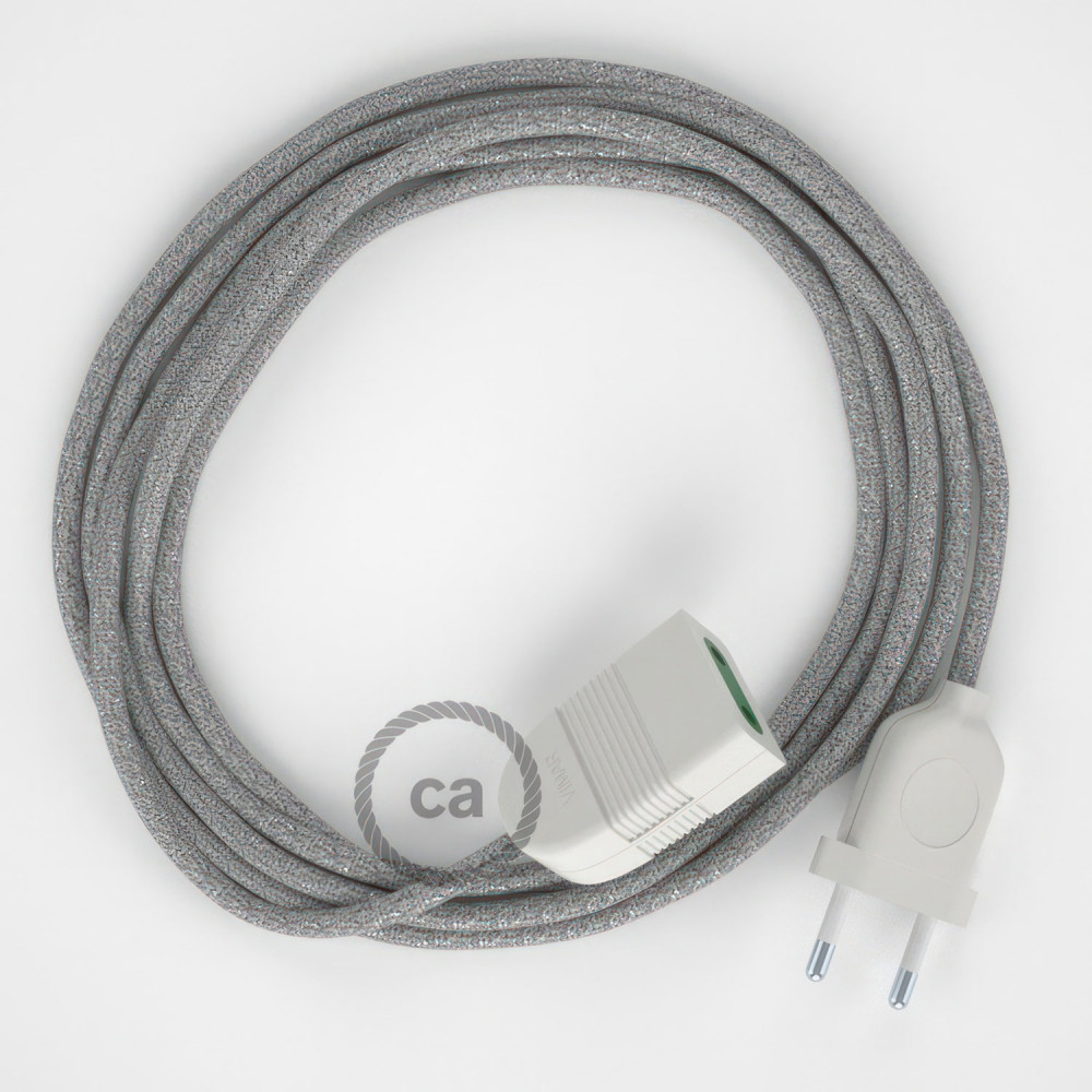 Szikrázó ezüst műselyem szövet RL02 2P 10A Hosszabbítókábel Made in Italy