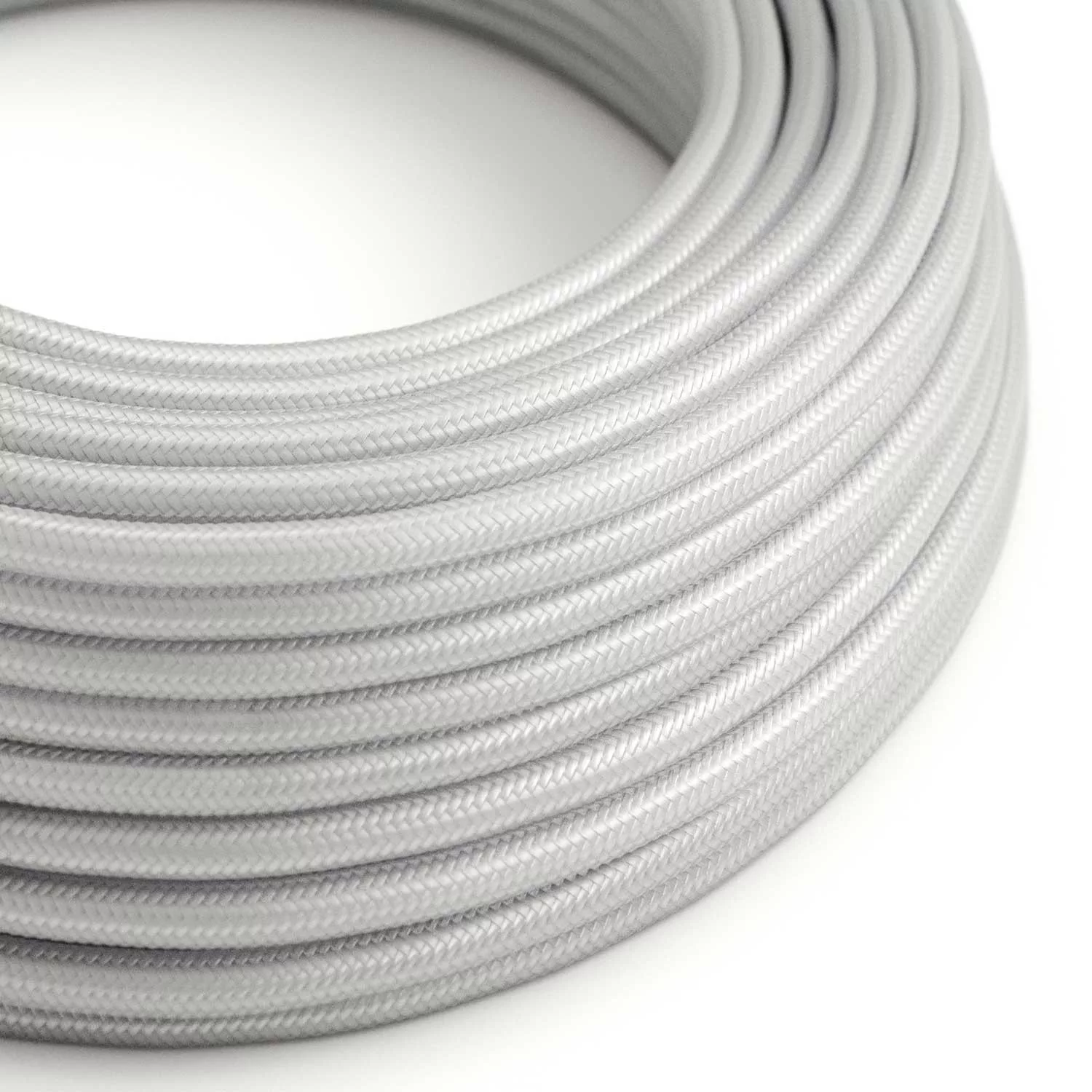 Kerek elektromos kábel RM02 ezüst műselyem egyszínű szövettel borítva