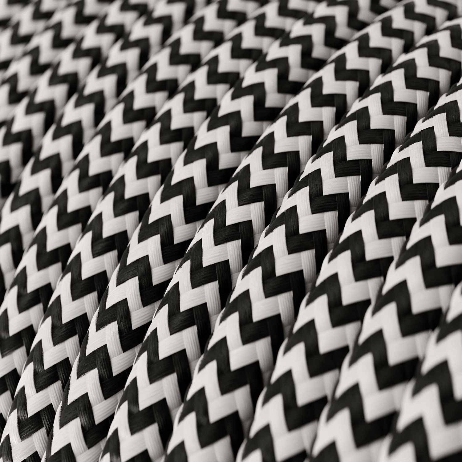 Creative Cables textil lámpakábel Fényes szénfekete és optikai fehér cikk-cakk textil kábel – Az XZ2RZ04