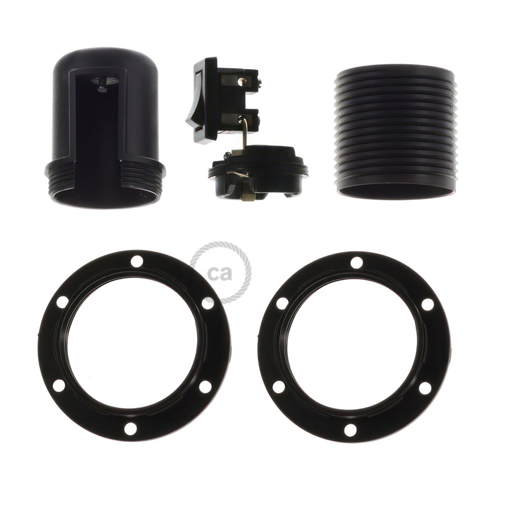 Creative Cables lámpatest Kettős hüvelyes, hőre lágyuló E27 lámpafoglalat készlet lámpaernyőhöz kapcsolóval PL27PNTFNB fekete