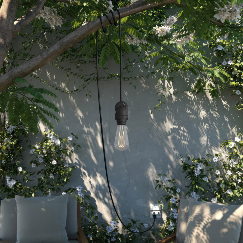 Creative Cables textil lámpakábel Moduláris Snake, hordozható kültéri lámpa, 5 m-es textil kábel, IP65 PSENESM04-L fekete