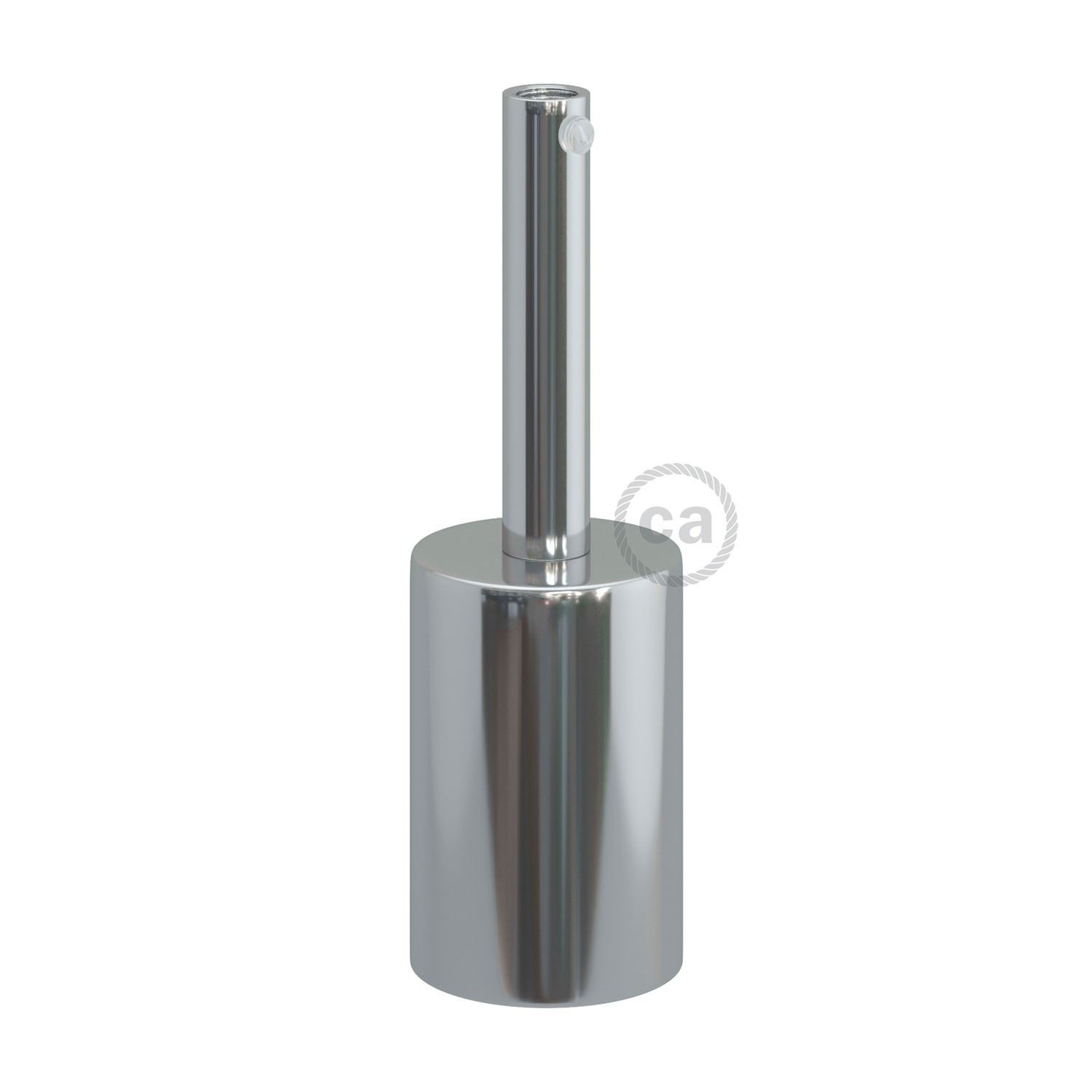Hengeres lámpafoglalat-készlet, amely egy E27-es lámpafoglalatból és egy 7 cm-es hengeres fém kábelbilincsből áll, ideális kedvenc textil kábelével és mennyezeti rozettájával (külön megvásárolható) való használatra.