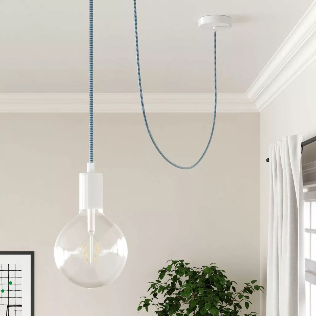 Creative Cables textil lámpakábel Fényes kék cián és optikai fehér cikk-cakk textil kábel – XZ3RZ11