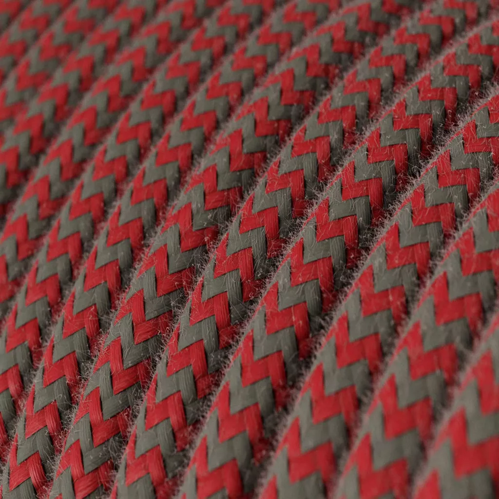 Kerek elektromos kábel pamutborítással - ZigZag tűzpiros és szürke RZ28.