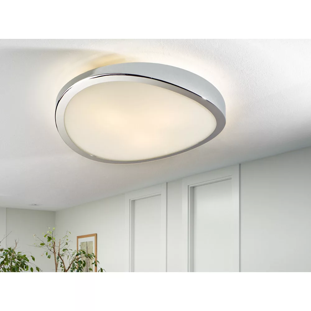 Mennyezeti lámpa 3 lámpából fémből, króm felülettel. Opálüveg búra.