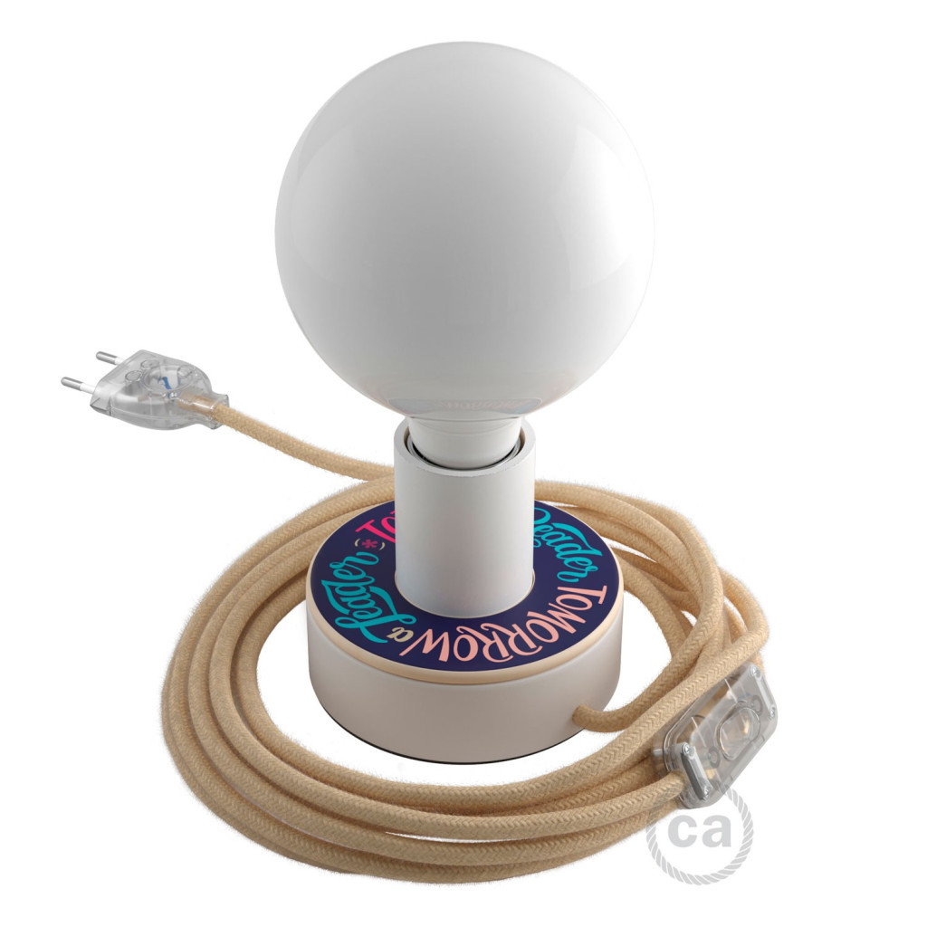 2 x 0,75 Creative-Cables kerek kábel, juta színű szövet borítással, HAR tanúsítvánnyal, olasz gyártmány, 2 méter hosszú (150 cm a dugasztól a kapcsolóig + 50 cm a kapcsolótól a Posaluce-ig)