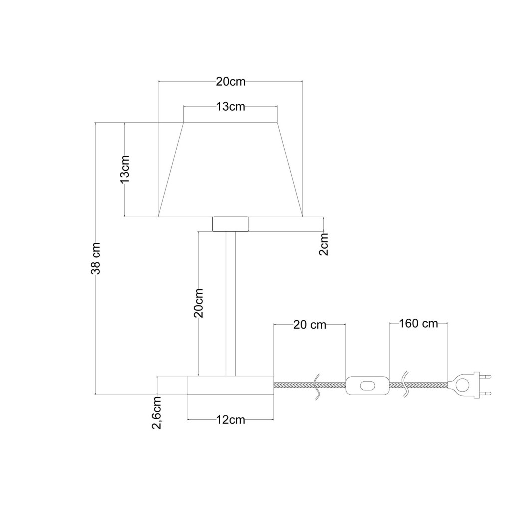 1,8 méter Creative-Cables kábel (160 cm a dugasztól a kapcsolóig + 20 cm a kapcsolótól az alaptestig) 2x0,75, HAR tanúsítvánnyal. Olaszországban gyártva