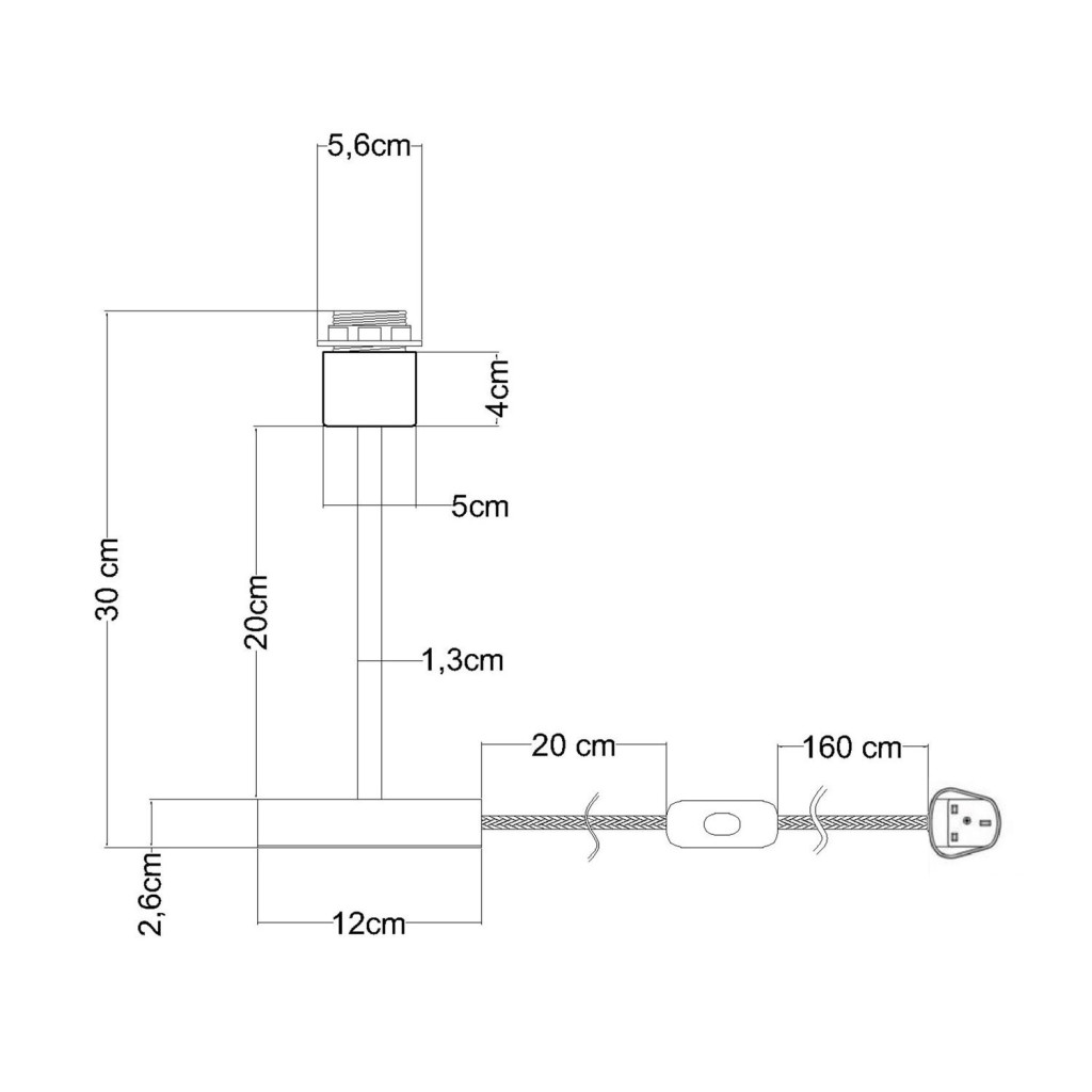 1,8 méter Creative-Cables kábel (160 cm a dugasztól a kapcsolóig + 20 cm a kapcsolótól az alapig) 2x0,75, HAR tanúsítvánnyal. Olaszországban gyártva