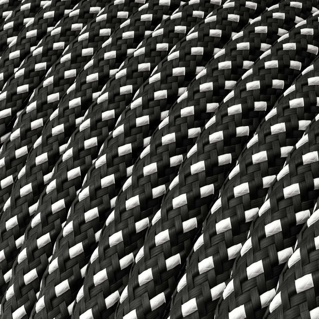 Kerek Creative-Cables kábel szövetborítással: 2 méter (150 cm a foglalattól a kapcsolóig + 50 cm a kapcsolótól az Alzaluce-ig) 2x0,75, HAR tanúsítvánnyal. Olaszországban gyártva