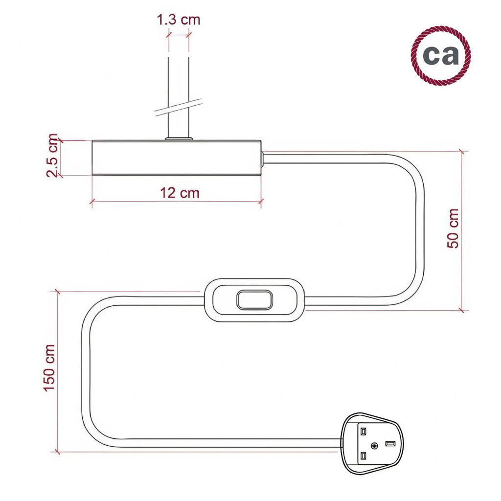 2 m Creative Cables kábel (150 cm a dugasztól a kapcsolóig + 50 cm a kapcsolótól az Alzaluce-ig) 2x0,75, HAR tanúsítvánnyal. Olaszországban gyártva