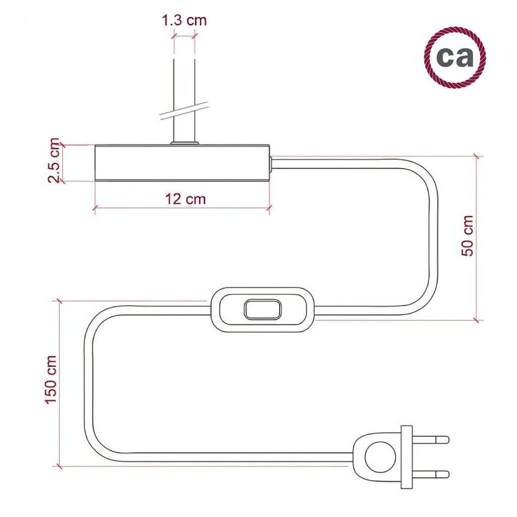 • Szövetborítású kerek elektromos kábel: 2 m (150 cm a dugasztól a kapcsolóig + 50 cm a kapcsolótól az Alzaluce-ig) 2x0,75, HAR tanúsítvánnyal, olasz gyártmány