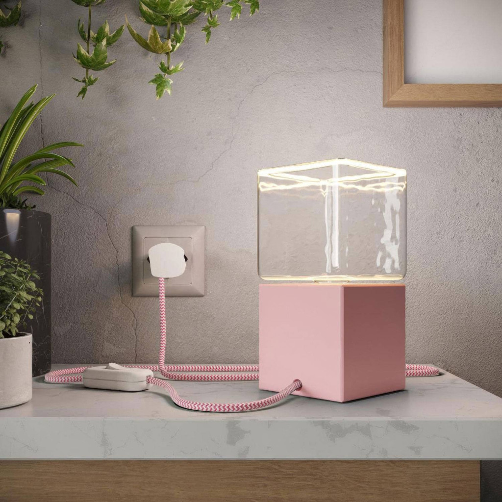 Minőségi anyagok, erős négyzet Vonalak kontrasztban a lágy pasztell színekkel: A Posaluce Cubetto Color az asztali lámpa, amely nem marad észrevétlen!