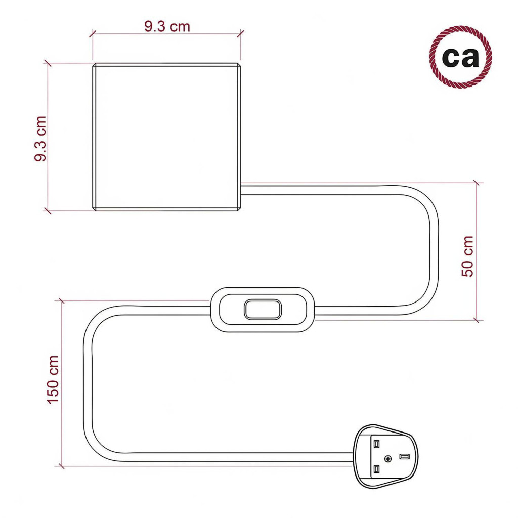 Creative-Cables kábel: 2 méter (150 cm a csatlakozótól a kapcsolóig + 50 cm a kapcsolótól a Posaluce-ig) 2x0,75, HAR tanúsítvánnyal. Made in Italy