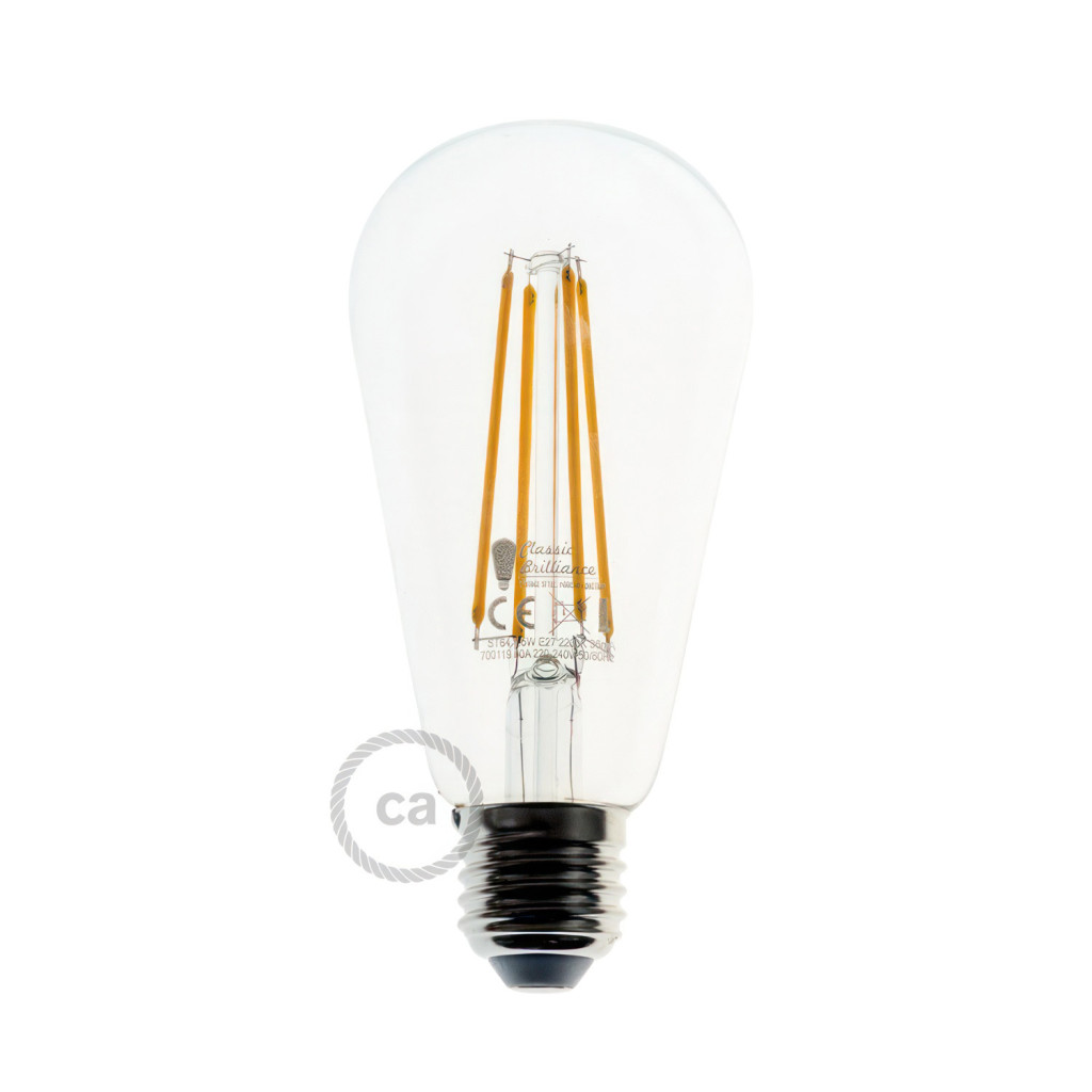 Izzó [BB-T02]: LED, átlátszó, ST64, 7W, 806 Lm, 2700K, E27, E, szélesség 64 mm, magasság 145 mm, szabályozható