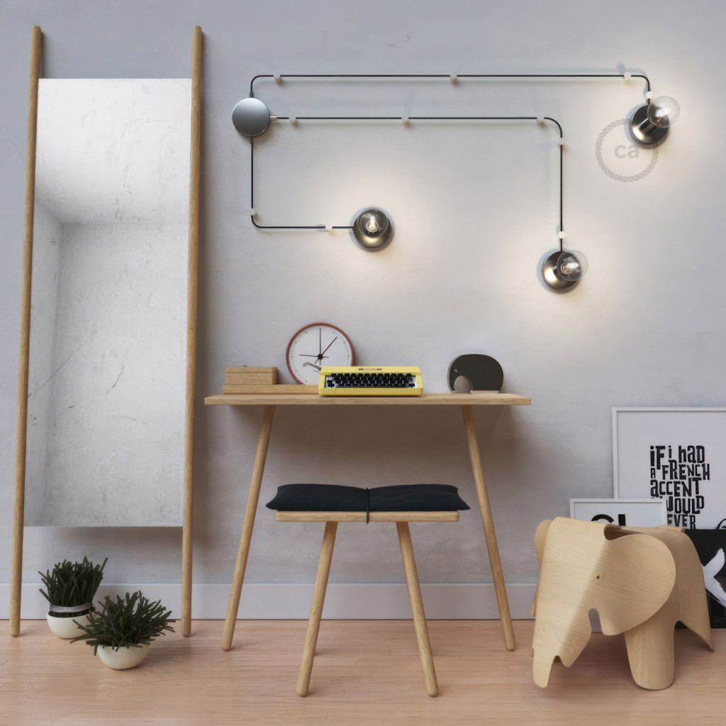 Creative Cables lámpakábel Spostaluce, fém fényforrás szövetkábellel és oldalsó furatokkal APM1FC2LCR3RN02-L