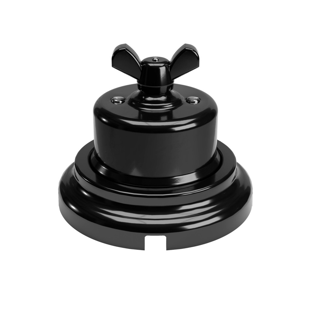 Kapcsoló/elterelő 10AX250V porcelán fali kapcsoló fekete színben, pillangószárnyas anyával: