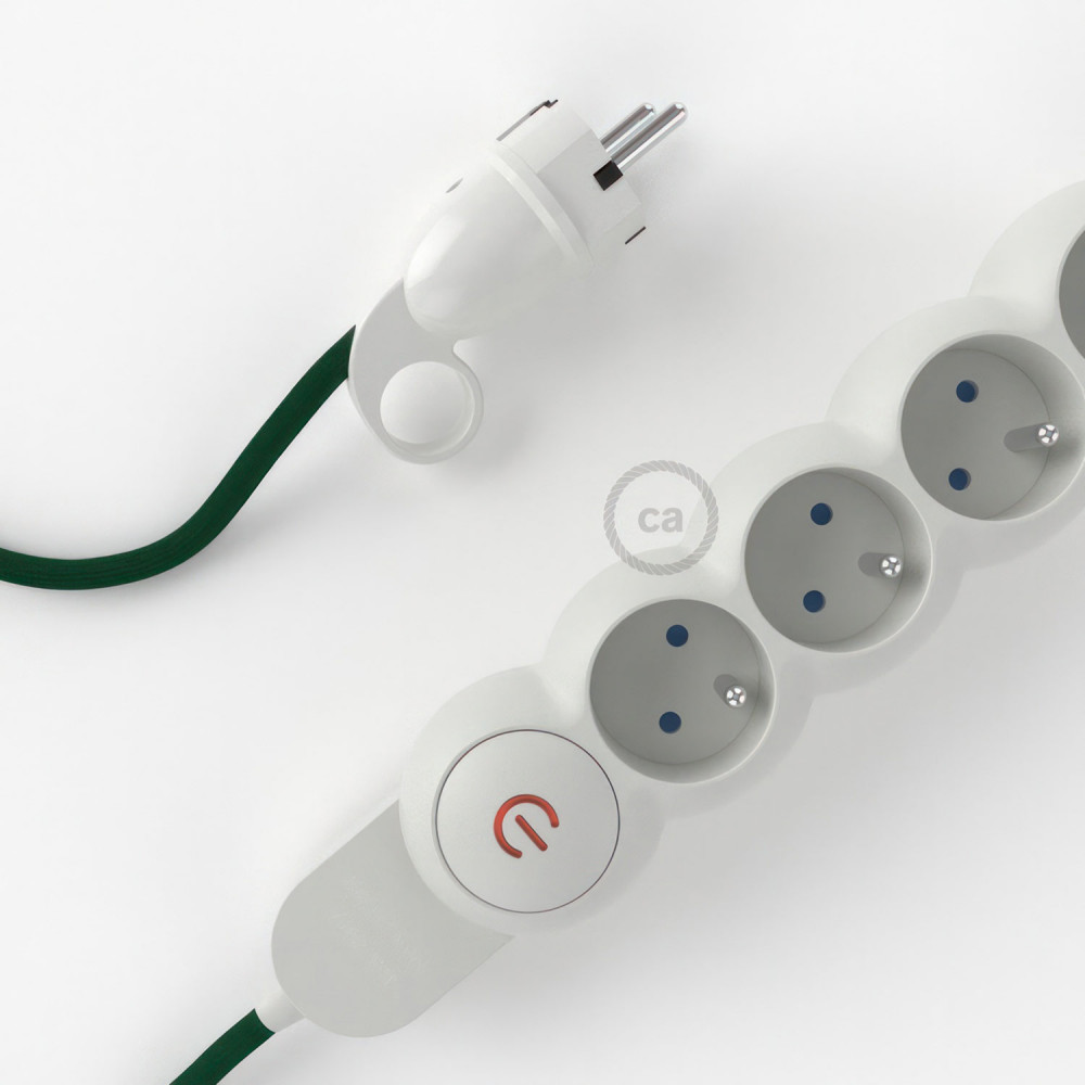 A műselyem Sötétzöld RM21 Creative-Cables szövettel borított elektromos kábellel ellátott elosztó nem az Ön szokásos többszörös aljzata!