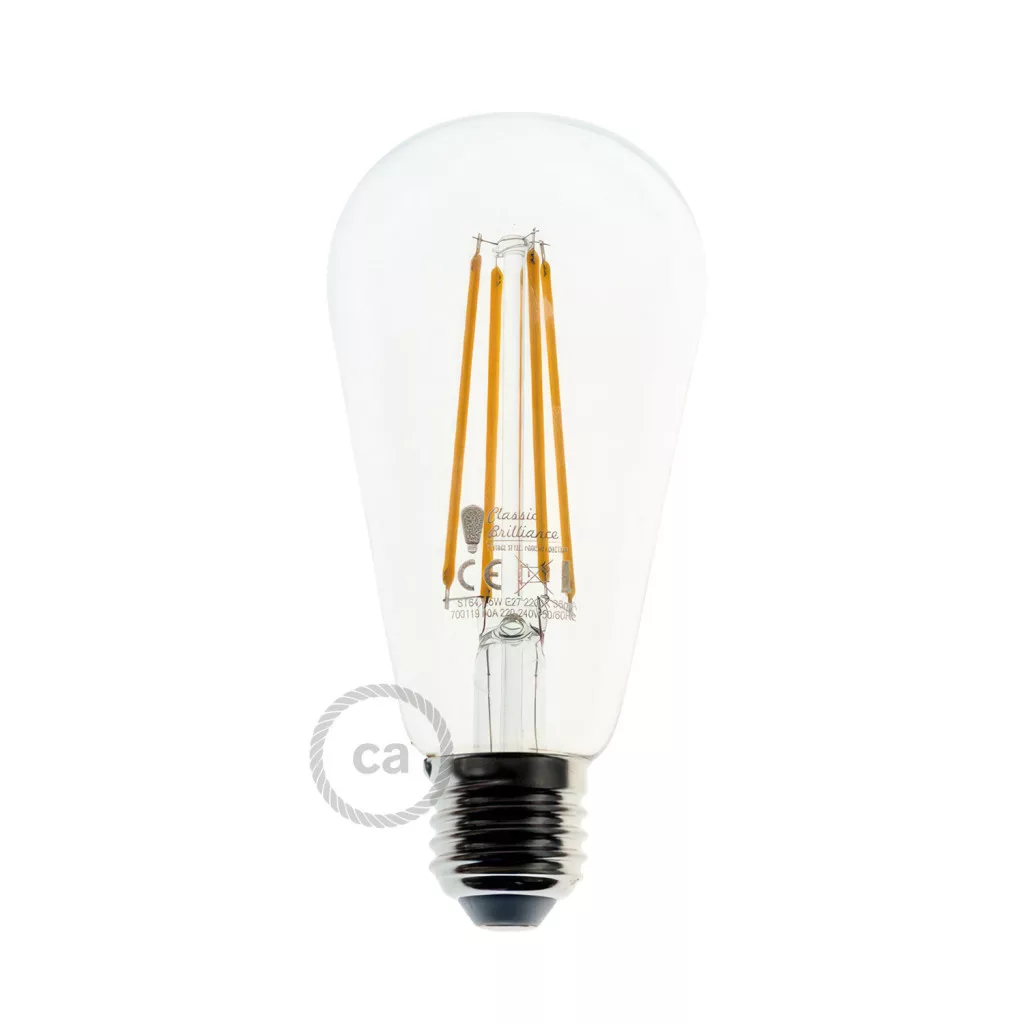 Izzó [BB-T02]: LED, átlátszó, ST64, 7 W, 806 Lm, 2700 K, E27, E, szélesség 64 mm, magasság 145 mm, szabályozható