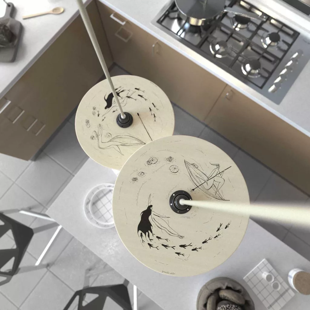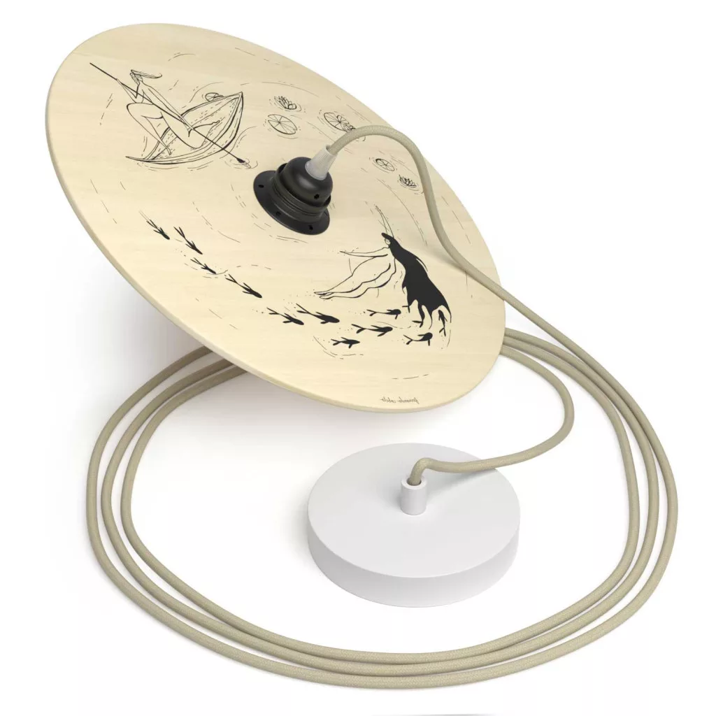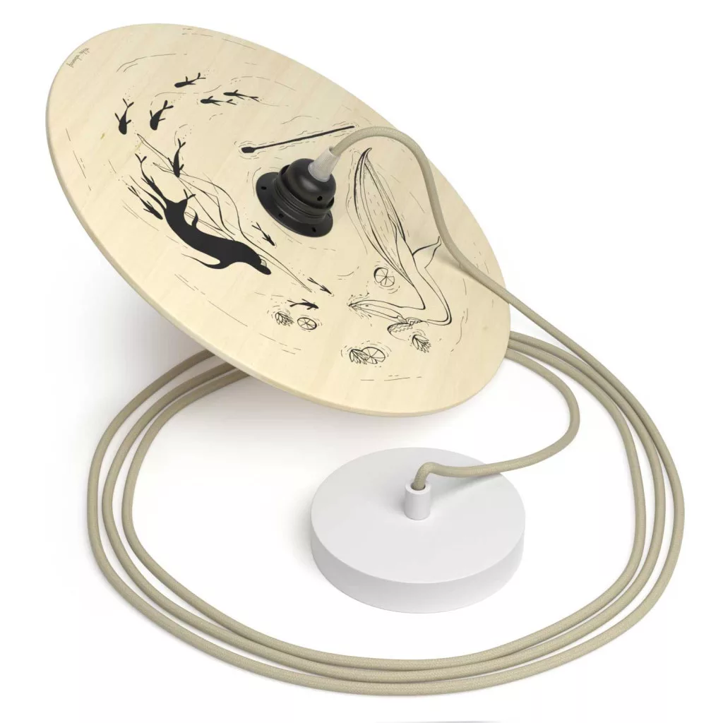 Creative Cables függeszték Függesztett lámpa textil kábellel, UFO kétoldalas fa lámpaernyővel és fém PDMPNRC43UFO04