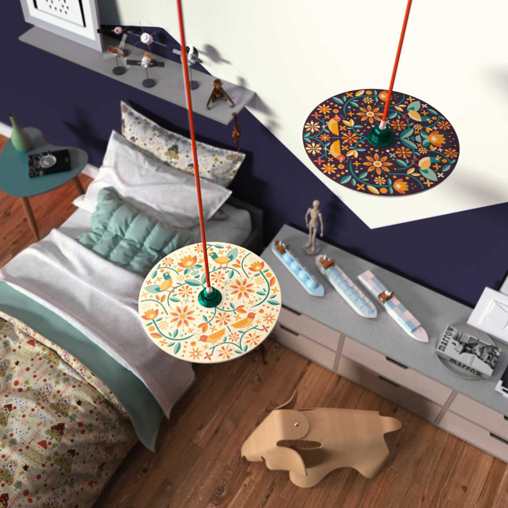 Creative Cables függeszték Függesztett lámpa textil kábellel, UFO kétoldalas fa lámpaernyővel és fém PDMPNRM15UFO08