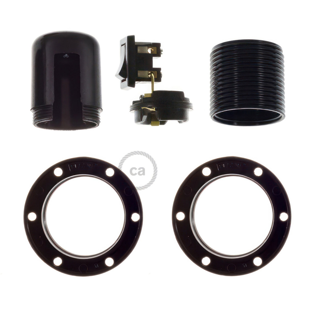 Creative Cables lámpatest Kettős hüvelyes bakelit E27 lámpafoglalat készlet lámpaernyőhöz kapcsolóval PL27BNFIN