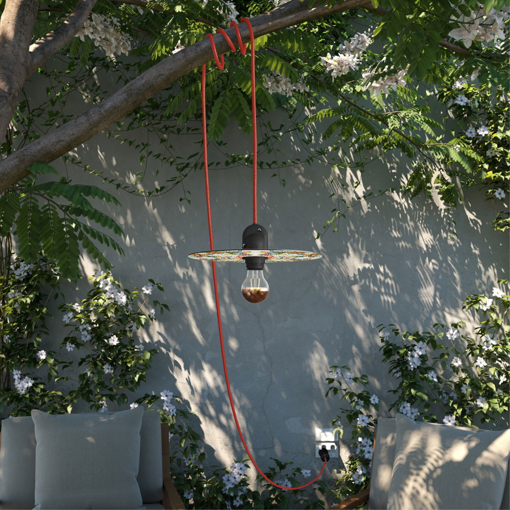 Creative Cables lámpatest Snake Modulair mini Ellepì „Maioliche” lapos lámpaernyővel, hordozható kültéri lámpa, PSENESM09DD24MA03-L IP65