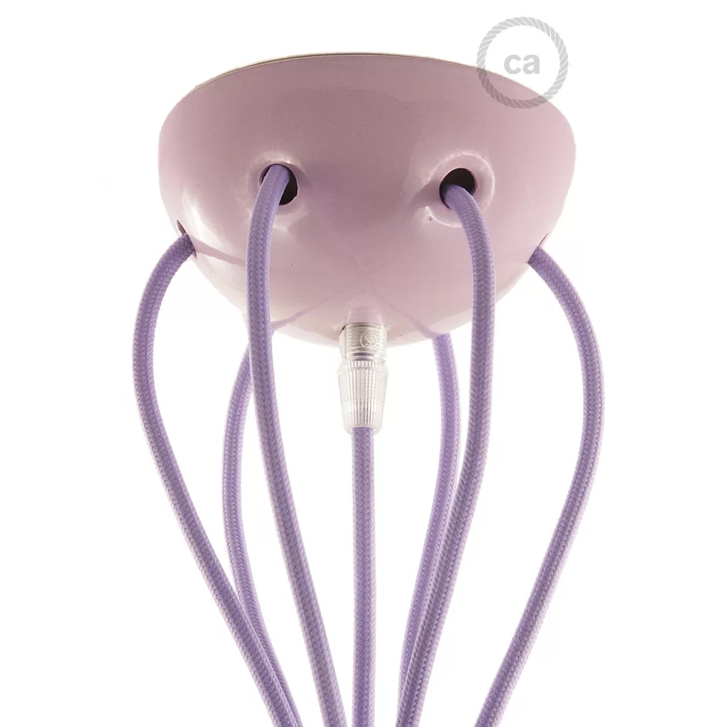 - Kerámia mennyezeti rozetta Ø 120 mm, mennyezeti rögzítő rendszerrel, 1 menetes csővel, 1 komplett átlátszó kábelbilinccsel. 1 menetes mennyezeti kampó, 1 krómozott gömb alakú végződés, amely akkor használható, ha a központi lyuk nem kerül felhasználásra.
