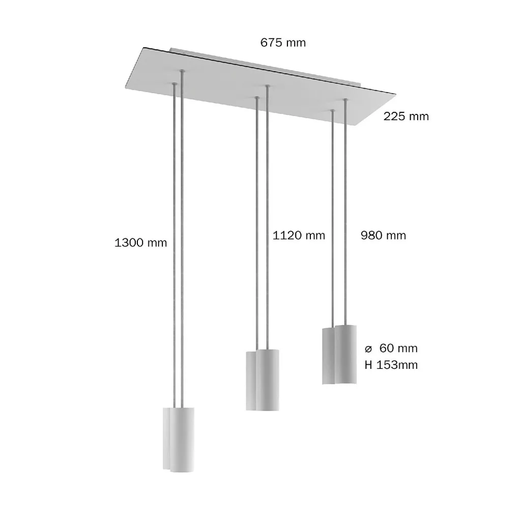 Creative Cables lámpatest 675 mm-es téglalap alakú XXL Rose-One 6 lámpás függőlámpa, szövetkábellel SPM6REVBO102KSPOTME14VBORM01-L