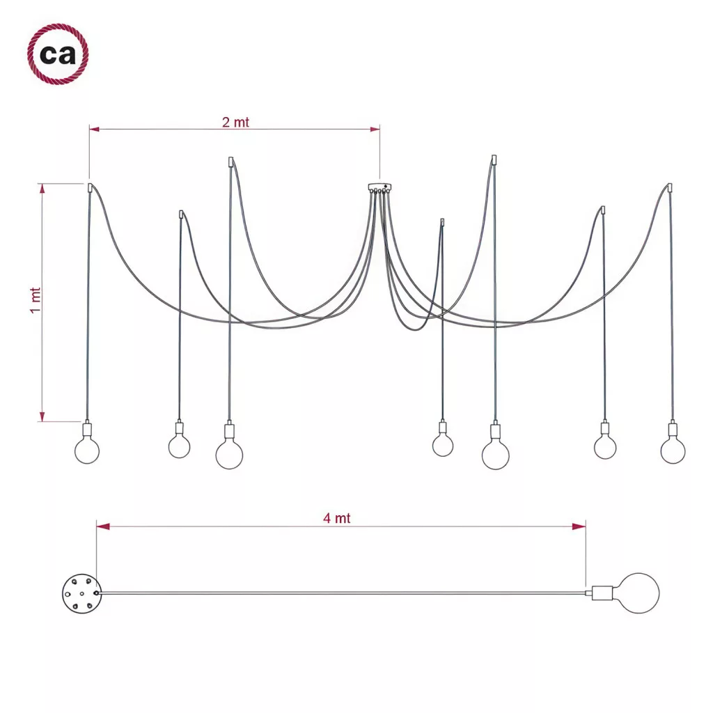 - 7 db E27-es lámpafoglalat ENEC-IMQ tanúsítvánnyal rendelkező hőre lágyuló műanyagból, fém kupakkal. Maximális teljesítmény: 105 W lámpafoglalatonként.